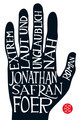 1. Typografisch inszenierte Schriftzüge zum Beispiel, die häufig durch starke Kontraste ins Auge fallen und den Titel gleich zum Motiv machen, also Bild- und Textebene nicht mehr trennen, sondern zusammenfügen. Dabei können Schriftgrößen variieren, Handschriften sind nicht selten gesehen, und in der Anordnung kann durch Anschnitte auch über die Fläche hinausgearbeitet werden. Eines der bekanntesten Beispiele ist hier sicher Extrem laut und unglaublich nah von Jonathan Safran Foer, das Bestsellerlisten anführte und damit auch neue Möglichkeiten für die Gestaltung etablierte.