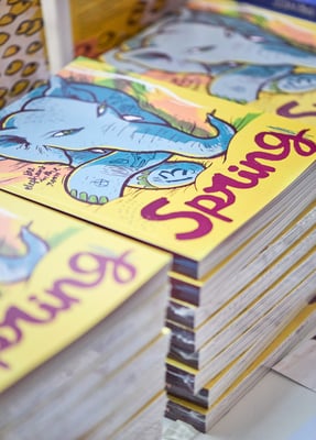 Am 15. August erscheint offiziell die 13. Ausgabe des SPRING Magazins. Die diesjährige Ausgabe ist etwas ganz besonderes: Sie ist nämlich in Indien entstanden. Acht SPRING-Zeichnerinnen haben mit acht indischen Kolleginnen in einer Schriftstellerresidenz nahe Bangalore gemeinsam an der Ausgabe gearbeitet. In den dort entstandenen Comics und Zeichnungen erzählen sie vom Leben als Frau in unterschiedlichen Kulturen, von Vorbildern, offenen Fragen, Sexualität, Stolz, Gewalt und Konflikten. Die Geschichten sind unterhaltsam und dramatisch, persönlich und allgemeingültig. Viele von ihnen drehen sich um einen oft ignorierten Zustand, den kaum einer anzusprechen wagt – "The elephant in the room", wie es im Englischen so schön heißt.