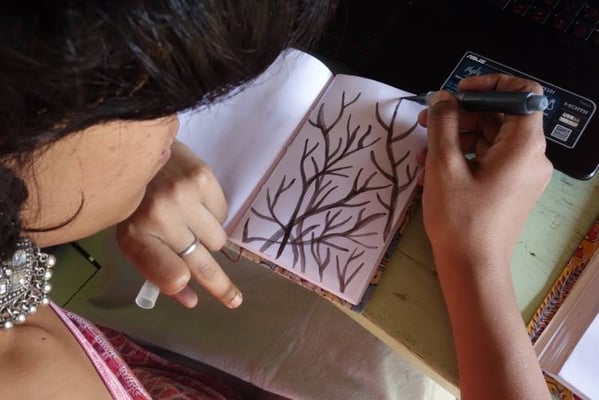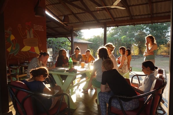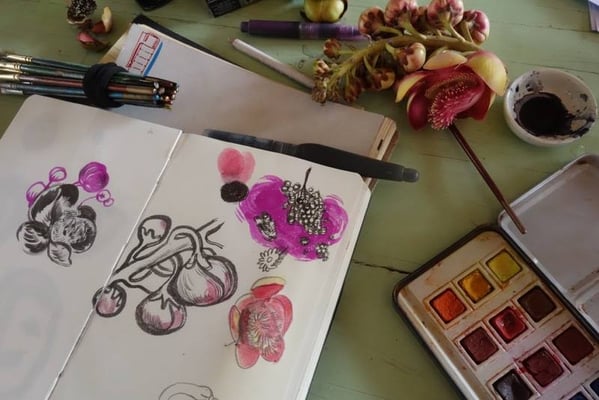 Ich denke, jede hat für sich andere Erfahrungen gemacht. Für mich war es sehr inspirierend und schön zu sehen, wie unterschiedlich jede arbeitet. Gleichzeitig fand ich es manchmal schwer, mich auf das eigene Projekt zu konzentrieren, weil ich am liebsten allen über die Schulter geschaut hätte, um mitzubekommen, wie sich deren Projekte entwickeln. Ich hatte meinen Arbeitsplatz unter einem kleinen Baum, der mir Schatten spendete. Wenn ich sehr konzentriert arbeiten wollte, hörte ich Musik über meine Kopfhörer, wenn ich offen für Gespräche war, hatte ich sie nicht auf. Wenn jemand Lust hatte, war sie willkommen, sich zu mir auf meine Decke zu setzen. Entweder sprachen wir dann über ihr Projekt oder über meines oder über ganz anderes.
