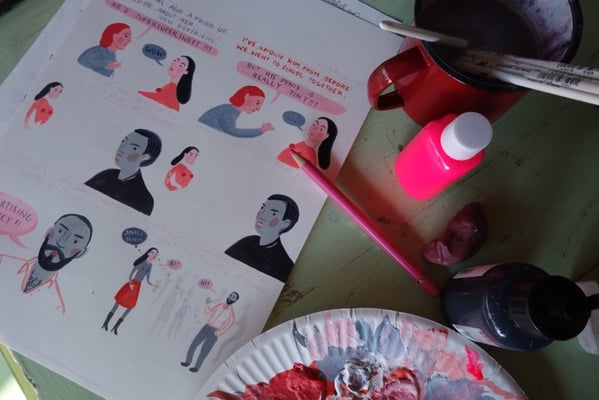 Auch hier war der Zugang zu einer Geschichte sehr unterschiedlich. Viele haben ihre Inspiration in der eigenen Biografie oder Familiengeschichte gefunden, aber es gab auch Themen, bei denen wir gemerkt haben, da hat jede eine Story zu erzählen. So sind die kurzen Geschichten/Comic-Strips wie die Bra-Stories im neuen SPRING entstanden. Wir hatten viel Spaß dabei, uns gegenseitig die absurdesten Geschichten zu erzählen, aber auch tragische und erschreckende Erfahrungen haben wir ausgetauscht. Natürlich hat nicht alles den Weg in das neue Spring gefunden. Teilweise weil wir das nicht wollten und weil wir auch fanden, wie wichtig es ist, Mut zu machen. Gleichzeitig nichts zu verschweigen, ein Mittelmaß zu finden, das ist die Kunst. Ich hoffe, das ist uns mit dem neuen SPRING gelungen!