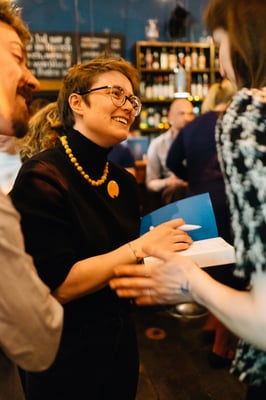 Bei unserer Verlagsreise in die Niederlande hatten wir ja wie gesagt DAS MAG kennengelernt, die seit Jahren sogenannte Leseclubs und Leseclubfestivals veranstalteten. Zu einem Leseclub können sich nur eine begrenzte Anzahl von Leser*innen anmelden. Alle Teilnehmer müssen das Buch vor der Veranstaltung gelesen haben, denn zum Leseclub kommt zwar der/die Autor*in, doch es wird nicht aus dem Buch gelesen (oder nur ganz kurz). Stattdessen wird über das Buch selbst gesprochen. Und das geht überraschend gut!