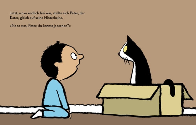 Im Herbst 2019 geht es im Kinderbuchprogramm weiter: Mit dem Bilderbuch Peter, Kater auf zwei Beinen der kanadischen Autorin Nadine Robert, illustriert von Jean Jullien: