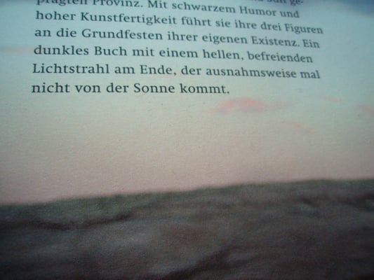 führt sie ihre drei Figuren an die Grundfesten ihrer eigenen Existenz. Ein forderndes, dunkles Buch mit einem hellen, befreienden Lichtstrahl am Ende, der ausnahmsweise mal nicht von der Sonne