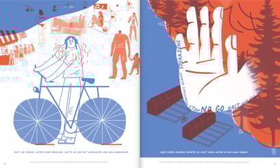 In der aktuellen Ausgabe des SPRING-Magazins erzählen die 11 Illustratorinnen Geschichten vom Freisein und ihren Wünschen nach Freiheiten, aber auch vom Eingeengtsein und von den Grenzen, die