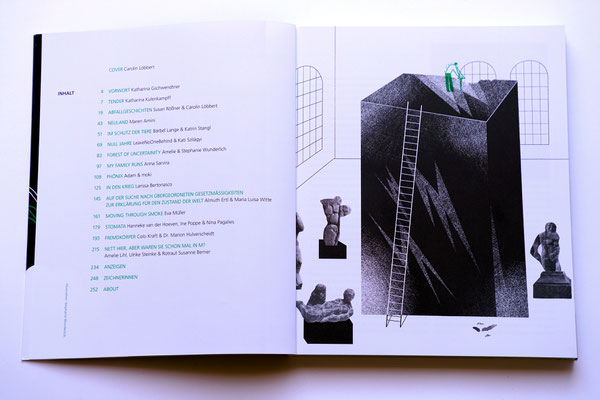 Mit Illustrationen, Comics und Texten von Almuth Ertl, Anna Sarvira, Carolin Löbbert, Colo Kraft, Eva Müller, Katharina Kulenkampff, Kati Szilagyi, Katrin Stangl, Larissa Bertonasco, Maren Amini, marialuisa, moki, Nina Pagalies, Stephanie Wunderlich und Ulrike Steinke.